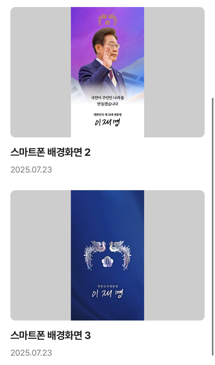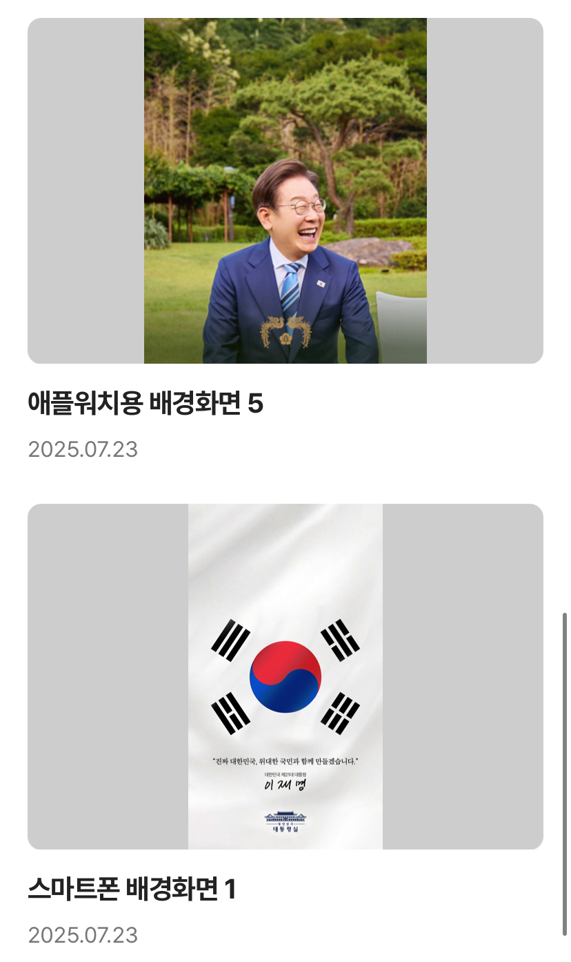 이재명 대통령의 취임 50일을 맞아 대통령실이 스마트폰 스마트워치용 디지털 굿즈 14종이 7월 23일 공개되었습니다. 그럼 이재명 대통령 디지털 굿즈 스마트폰 스마트워치 다운로드 바로가기에 대래 자세히 알아보겠습니다.