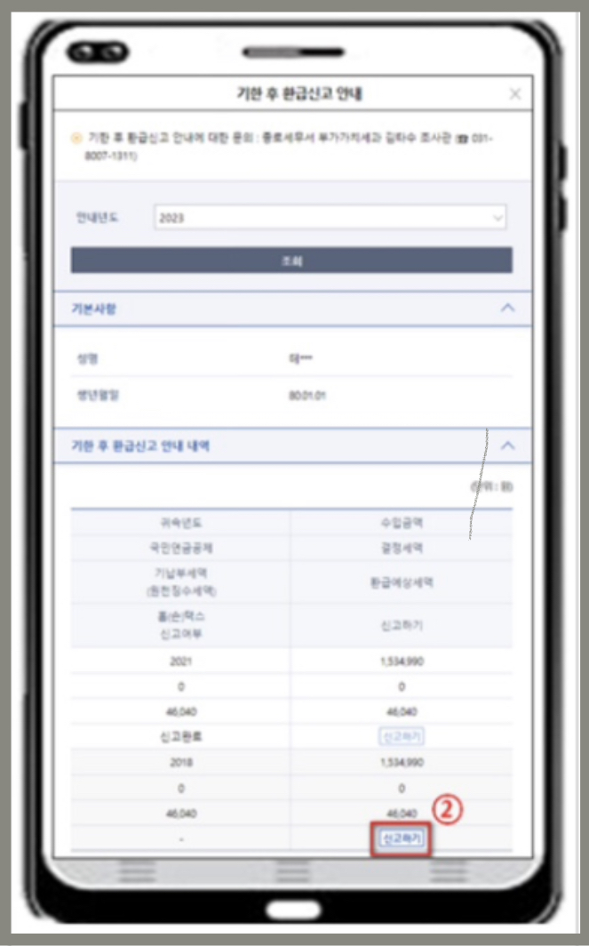 - 아직 신고하지 않은 환급세액을 신고하려면 신고하기 버튼 터치