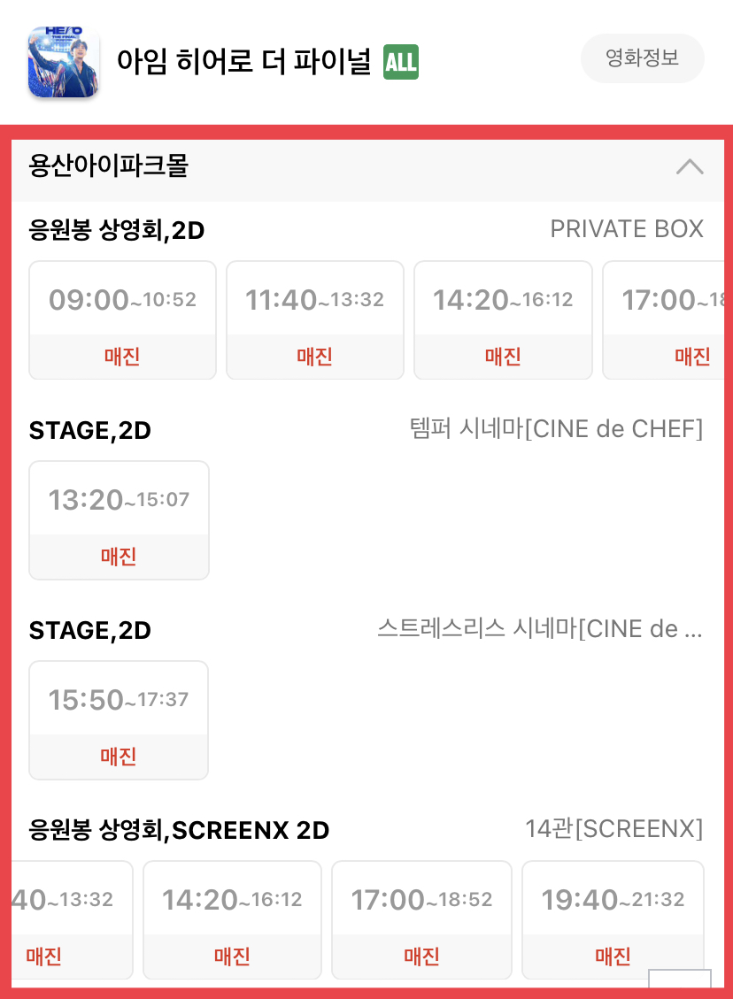 2. 임영웅 영화 아임 히어로 더 파이널 CGV 예매방법