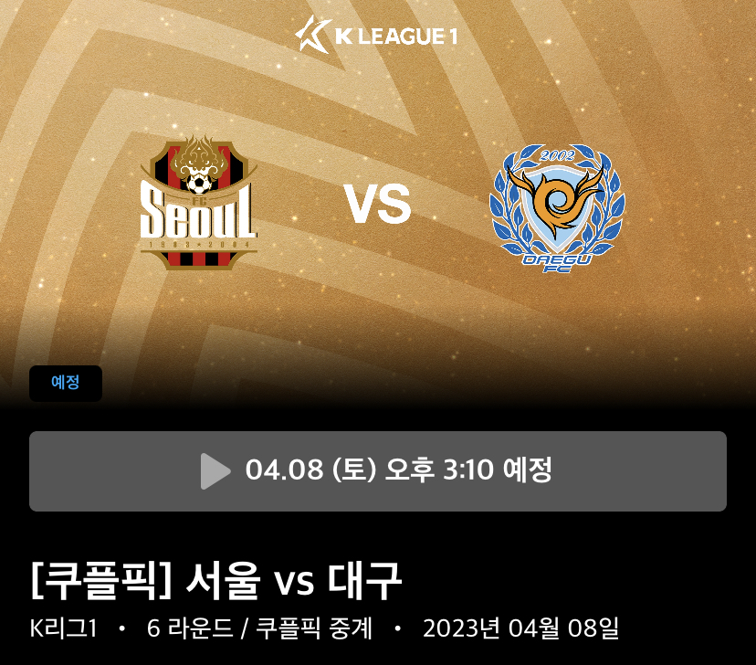 4월 8일 오후 3시 10분부터 FC서울 대 대구FC 쿠플픽 중계