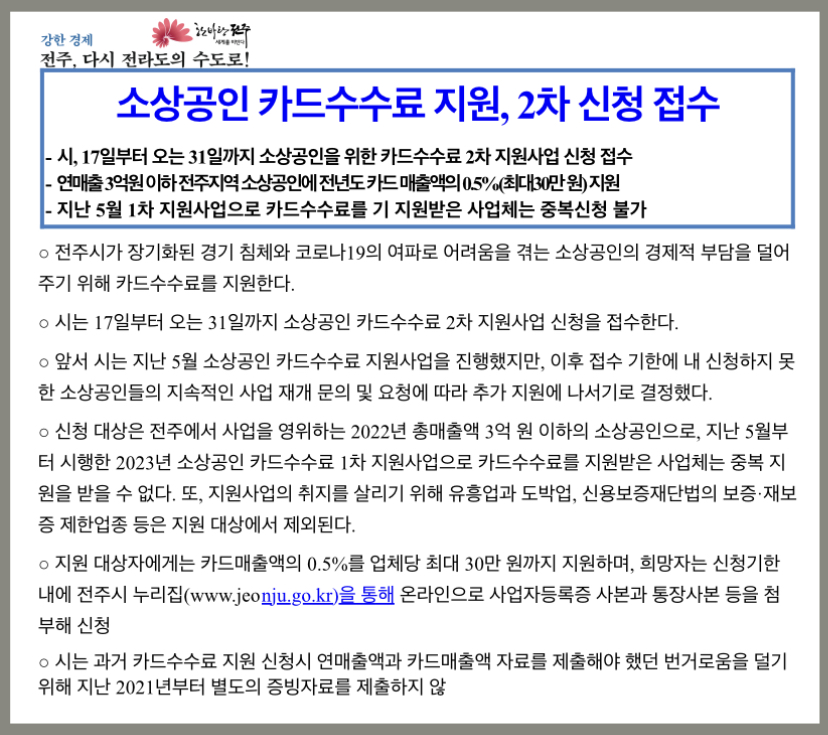 2. 전주시 소상공인 카드수수료 지원 2차 신청방법