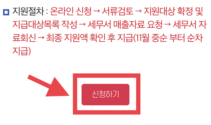 2. 지원 내용을 모두 읽고 하단에 있는 신청하기 버튼을 누르시면 됩니다.
