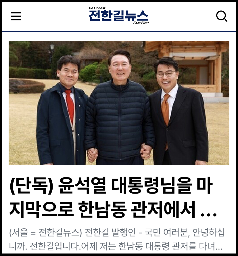 윤석열 전 대통령의 탄핵을 반대해 온 한국사 강사 전한길이 윤석열 전 대통령의 초청으로 서울 용산구 한남동 관저를 찾았다는 소식입니다. 자세한 내용은 전한길 뉴스 홈페이지를 통해 확인할 수 있는데요. 그럼 전한길 뉴스 홈페이지 바로가기에 대해 자세히 알아보겠습니다.