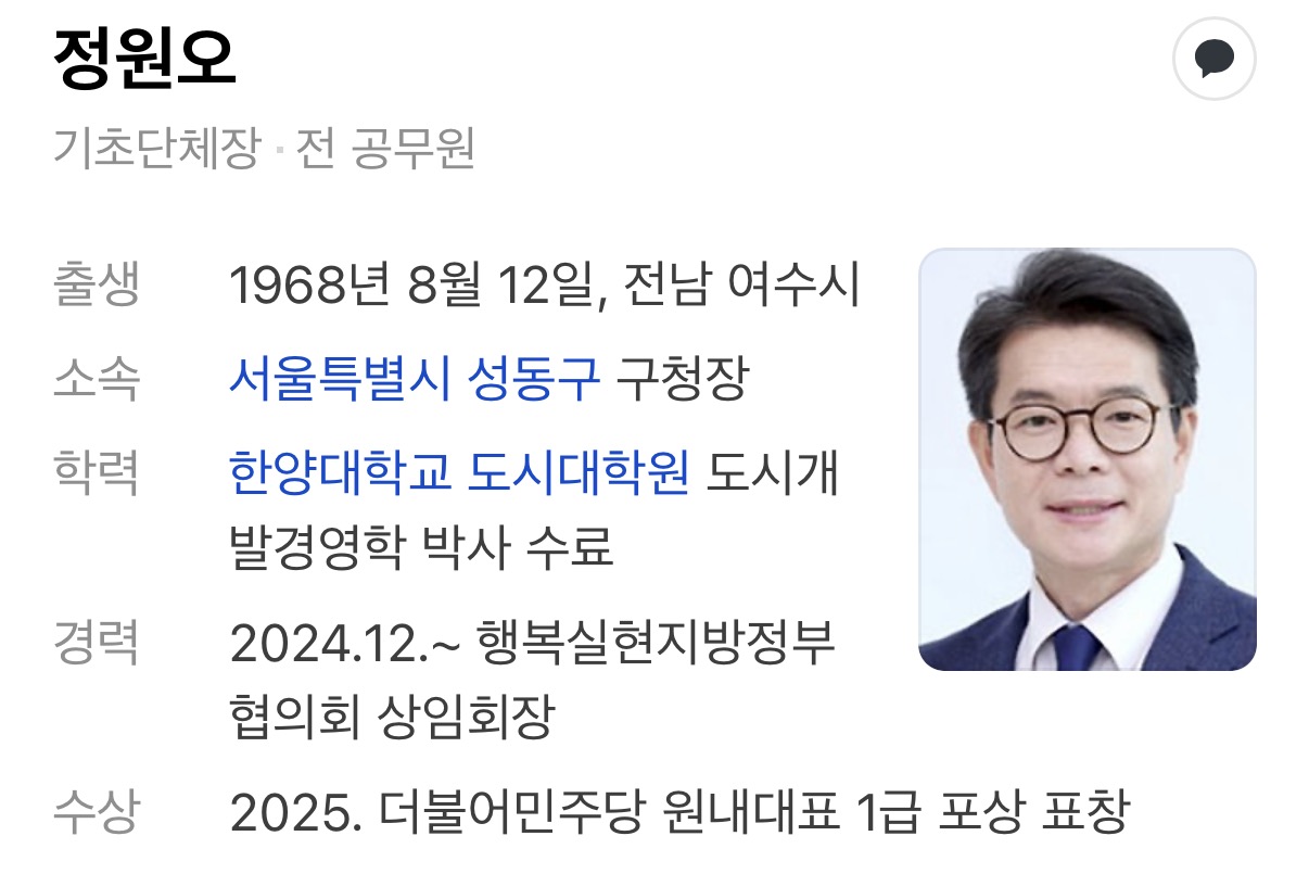 이재명 대통령이 정원오 서울 성동구청장에 대해 잘하기는 잘하나 보다라며 공개적으로 칭찬했다는 소식이 알려지면서 정원오 성동구청장 프로필을 궁금해하시는 분들이 많습니다. 그럼 정원오 성동구청장 프로필에 대해 자세히 알아보겠습니다.