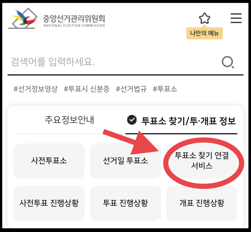 1) 투표소 찾기 홈페이지 바로가기를 누릅니다.
