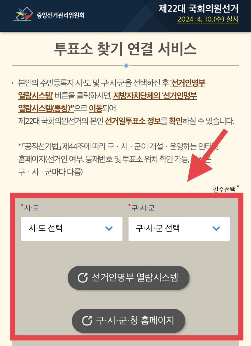 1. 제22대 국회의원 선거 내 투표소 찾기