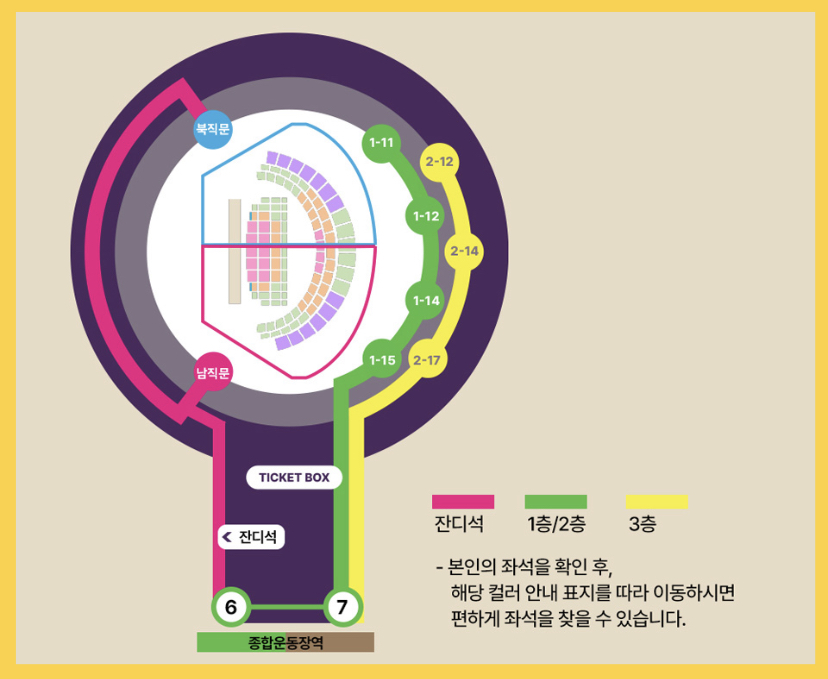 - 각 좌석별 입장게이트는 아래와 같습니다.