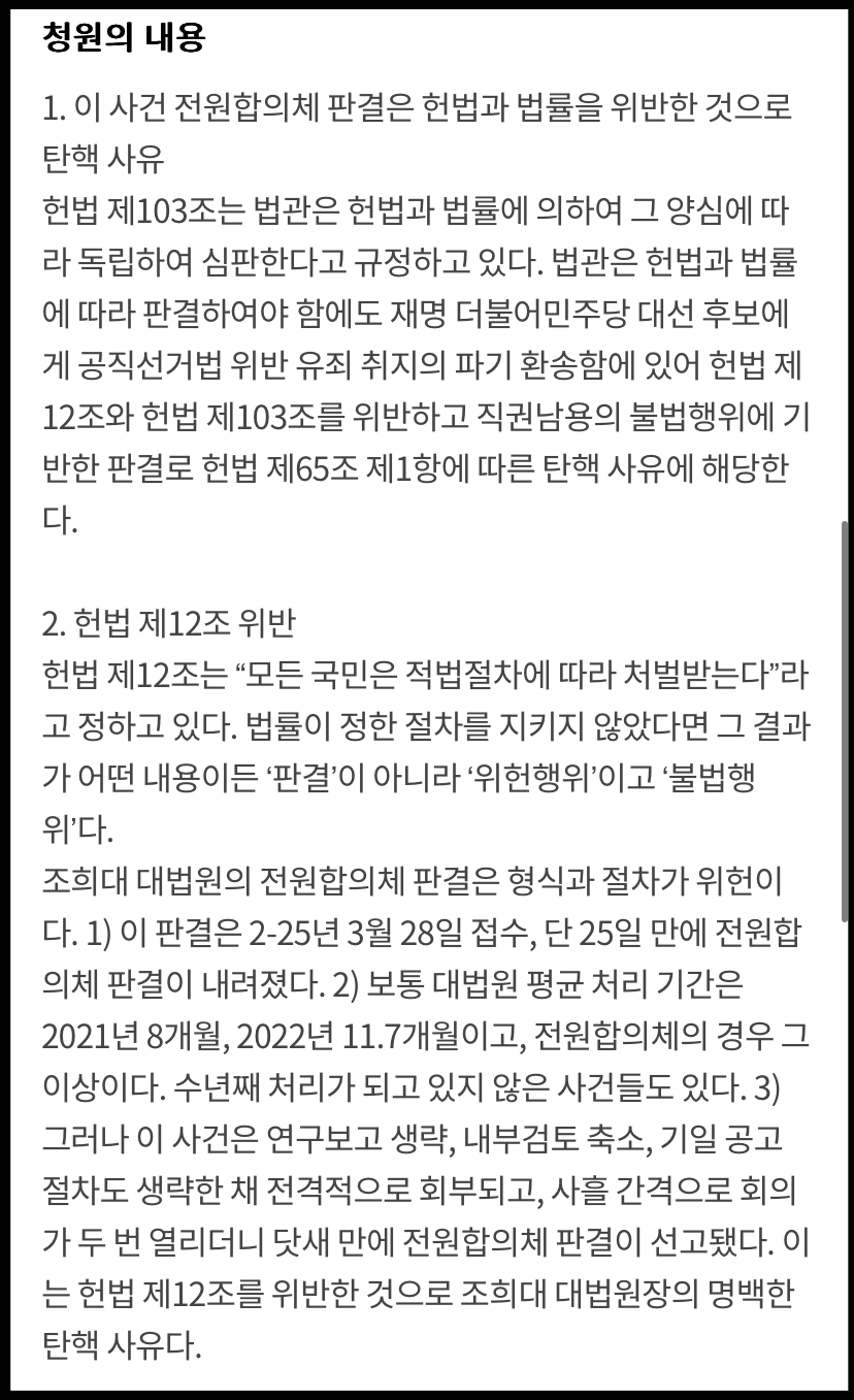 2. 조희대 대법관 탄핵 국민 청원 바로가기