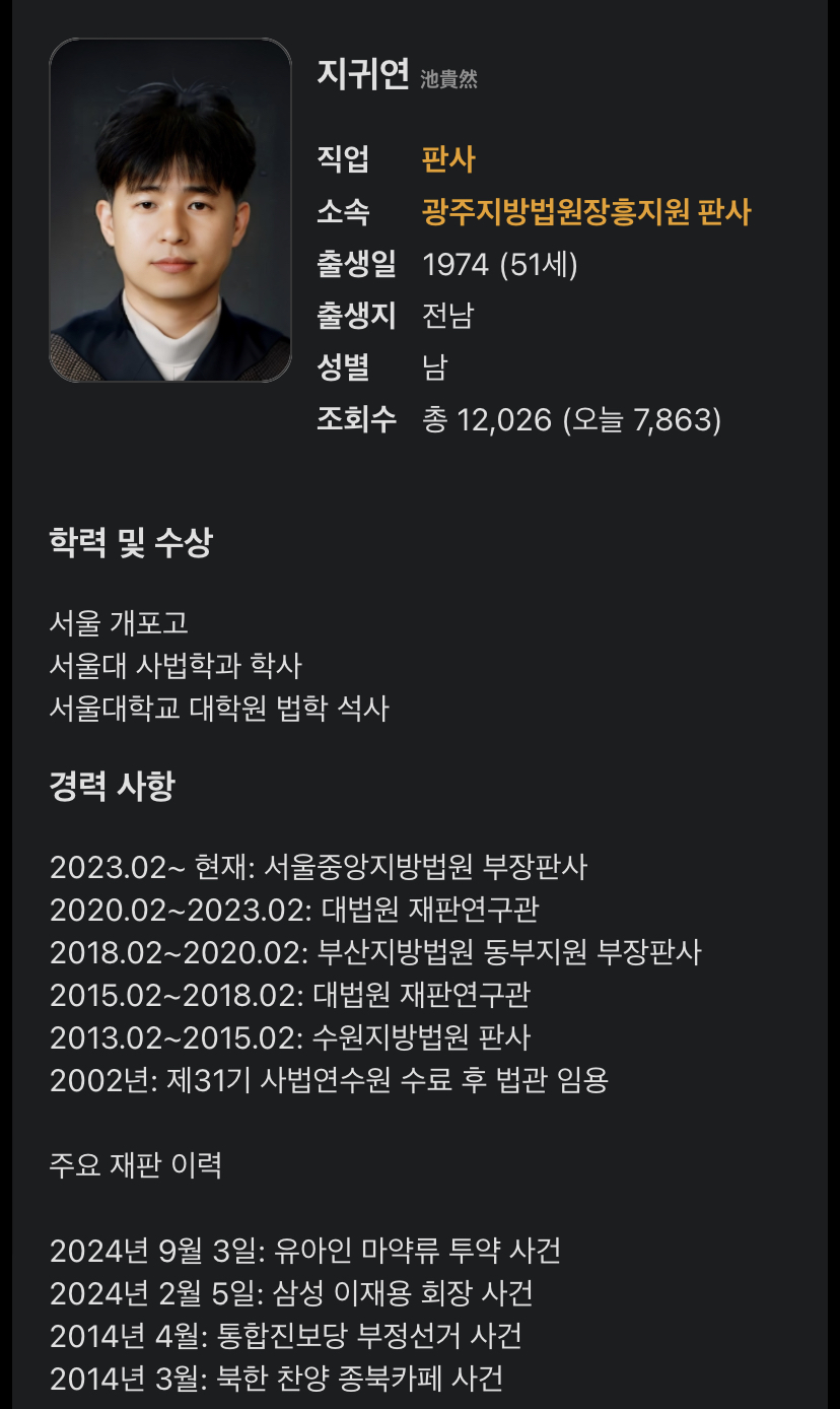 2. 지귀연 부장판사 프로필 고향 학력 성향