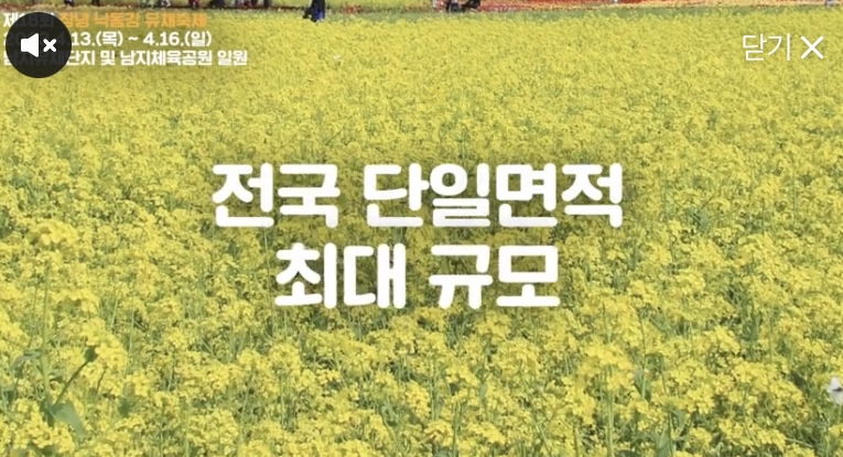 경남의 유명한 봄꽃 축제인 창녕 낙동강 유채축제가 4년 만에 개최됩니다. 창녕 낙동강 유채축제는 전국에서 단일면적 최대 규모를 자랑하는 110만㎡(33만평)의 유채꽃밭에서 창녕의 대표적인 축제입니다. 그럼 창녕 남지 낙동강 유채꽃 축제 일정 초대가수 주차에 대해 자세히 알아보도록 하겠습니다.