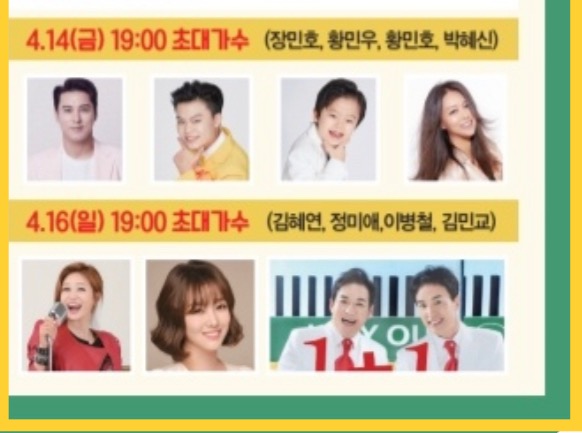 4월 16일(일) 19:00에는 초대가수 김혜연, 정미애, 이병철, 김민교가 출연합니다.