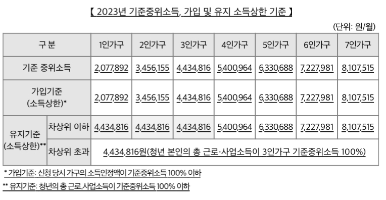 단, 기초생활수급자와 차상위 계층 청년의 경우에는 가입 연령 기준이 만 15∼39세이며, 근로·사업소득 기준은 월 10만 원 이상인 점 체크하시면 됩니다.