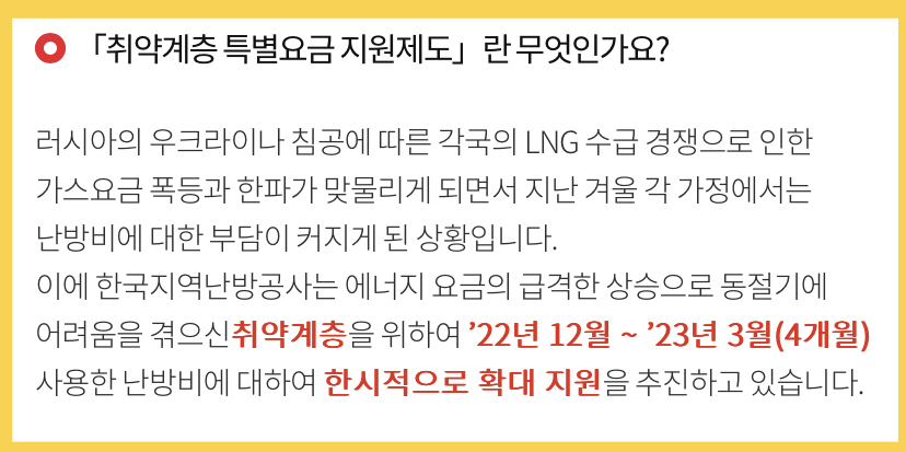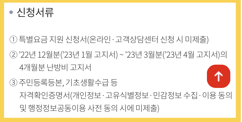 - 2022년 12월분(’23년 1월 고지서) ~ ’23년 3월분(’23년 4월 고지서)의 4개월분 난방비 고지서