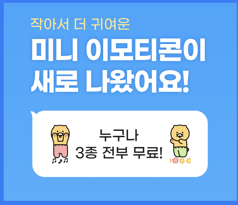 카카오는 이모티콘의 미니 버전인 미니 이모티콘을 3웡 19일 공개했습니다. 미니 이모티콘은 글자와 함께 다양한 사물을 표현할 수 있는 작은 크기의 이모티콘을 말하는데요. 그럼 카카오톡 미니 이모티콘 3종 무료 받기 링크에 대해 자세히 알아보도록 하겠습니다.