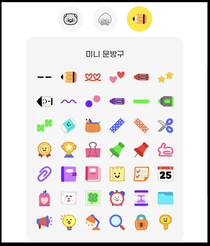 미니 문방구: 아기자기한 문구용품과 다양한 이모티콘이 깜찍하네요.