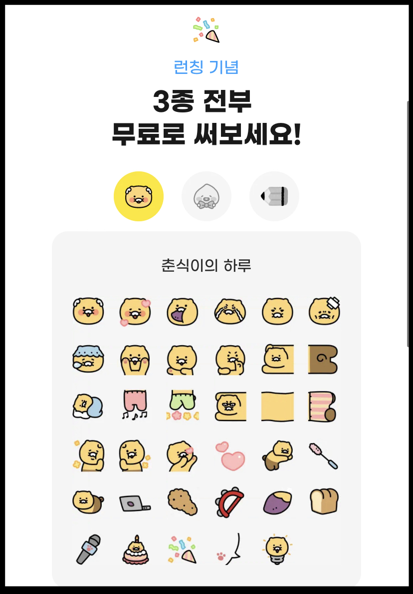 2. 카카오톡 미니 이모티콘 3종 무료 받기 링크