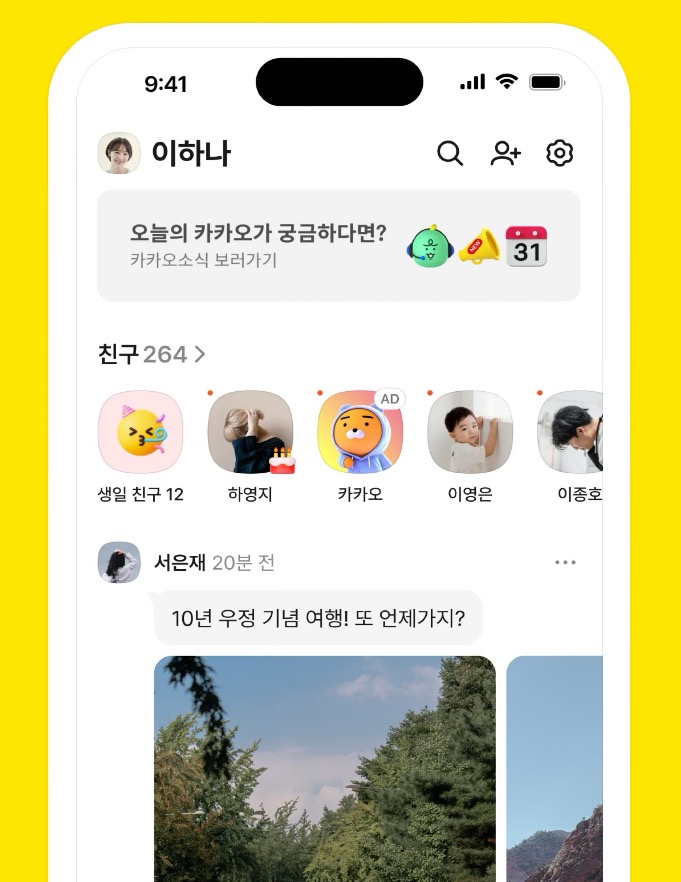 카카오톡의 친구 탭이 인스타그램과 유사한 피드형 화면으로 전면 개편이 되는데요.