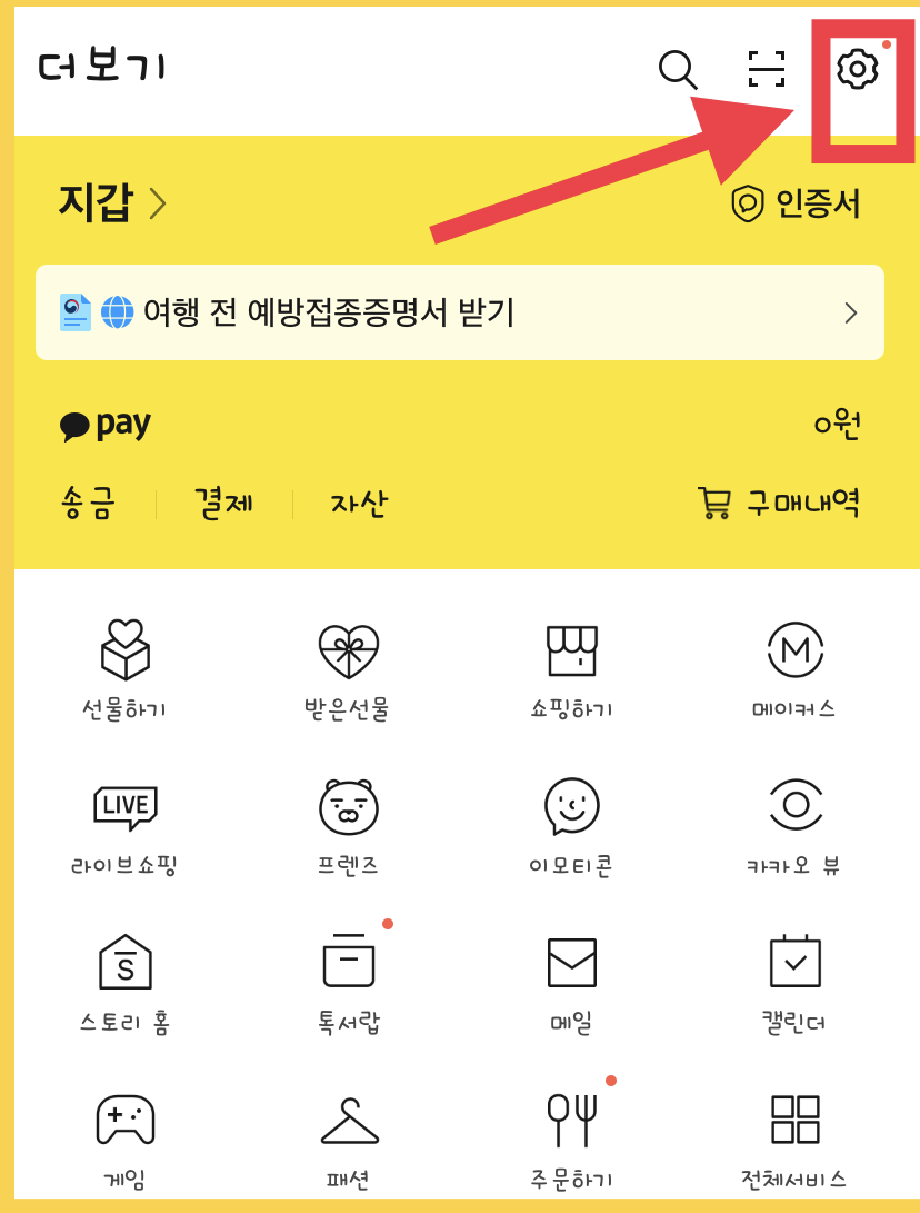 하단 오른쪽에 보이는 을 누른 뒤, 오른쪽 상단에 보이는 톱니바퀴를 눌러줍니다.
