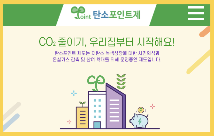 국민 일상 속의 탄소중립 실천활동시에 인센티브를 제공하는 내용의 탄소중립포인트제에 대한 국민들의 참여를 위해 현행 인센티브 지급 분야와 자원순환분야 실천항목을 확대했습니다.