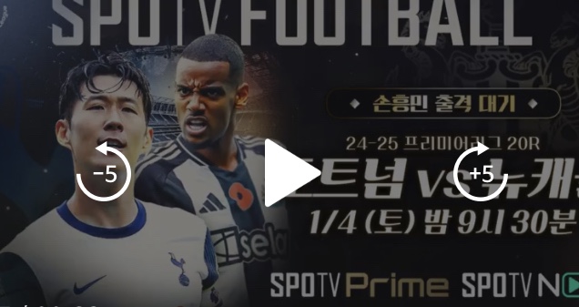 손흥민 선수가 새해 첫 골을 신고할지 주목되는 EPL 토트넘과 뉴캐슬 경기는 TV 채널 스포티비 프라임 SPOTV Prime과 스포츠 OTT 서비스 스포티비 나우 SPOTV NOW에서 독점 생중계로 보실 수 있습니다.