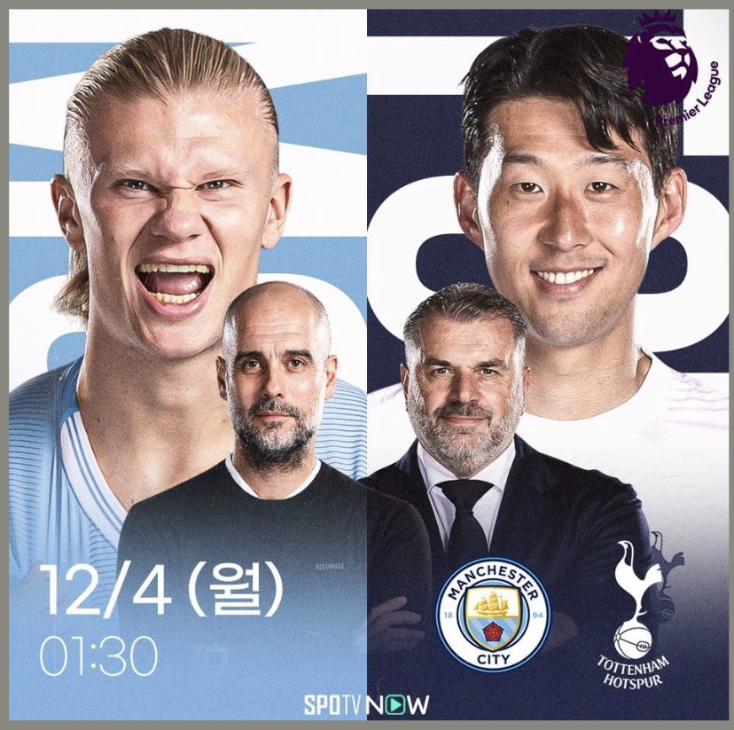토트넘과 맨시티가 12월 4일 새벽 1시 30분에 영국 맨체스터에 위치한 에티하드 스타디움에서 23-24 잉글랜드 프로축구 프리미어리그 14라운드 경기를 맞붙습니다. 그럼 토트넘 맨시티 EPL 23-24 손흥민 경기 생중계에 대해 자세히 알아보도록 하겠습니다.
