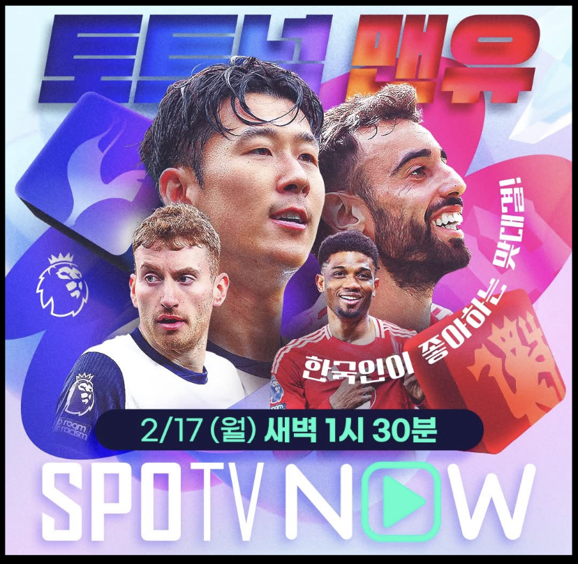 토트넘과 맨유의 경기는 2월 17일 월요일 새벽 1시 30분에 토트넘의 홈구장인 토트넘 홋스퍼 스타디움에서 펼쳐집니다. 두 팀의 경기 생중계 방송은 TV 채널로는 스포티비 프라임SPOTV Prime과 스포츠 OTT 서비스 스포티비 나우SPOTV NOW에서 생중계로 시청하실 수 있습니다.