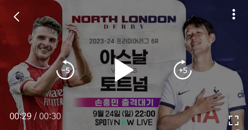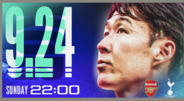 손흥민 선수는 이번 시즌 6라운드 경기에서 아스널을 상대합니다. 이번 북런던 더비 23-24 PL 5라운드 토트넘 대 아스널 경기는 9월 24일 일요일 밤 10시 킥오프되며 스포티비 온과 스포티비 나우에서 생중계로 보실 수 있습니다.