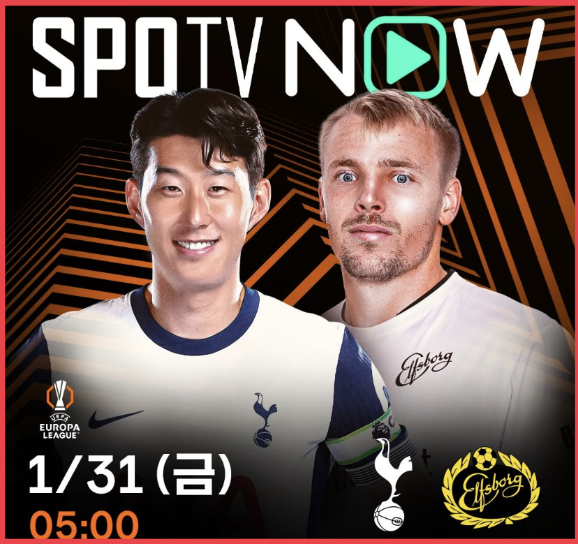 토트넘과 엘프스보리의 경기일정 및 생중계 방송은 1월 31일 새벽 5시 스포츠 OTT 채널인 스포티비나우 SPOTV NOW에서 시청이 가능합니다.