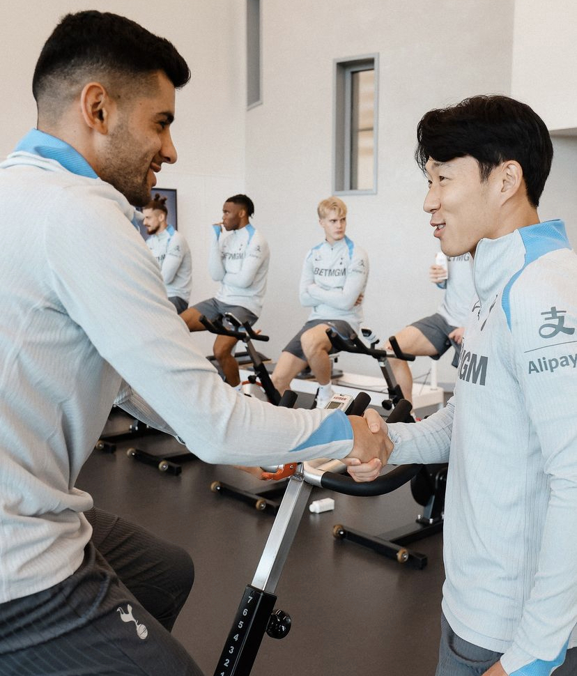 토트넘은 10월 19일(한국시간) 구단 SNS를 통해 팀 훈련 모습을 업로드했습니다. 부상에서 복귀한 손흥민 선수도 훈련에 집중했는데요. 토트넘 동료들도 모두 반기는 가운데 손흥민 선수는 웨이트 훈련장에서 팀 부주장 크리스티안 로메로 선수와 악수하며 인사했습니다. 또한 토트넘 미드필더 유망주 파페 사르 선수는 반가운 마음에 손흥민을 끌어안기도 했습니다.