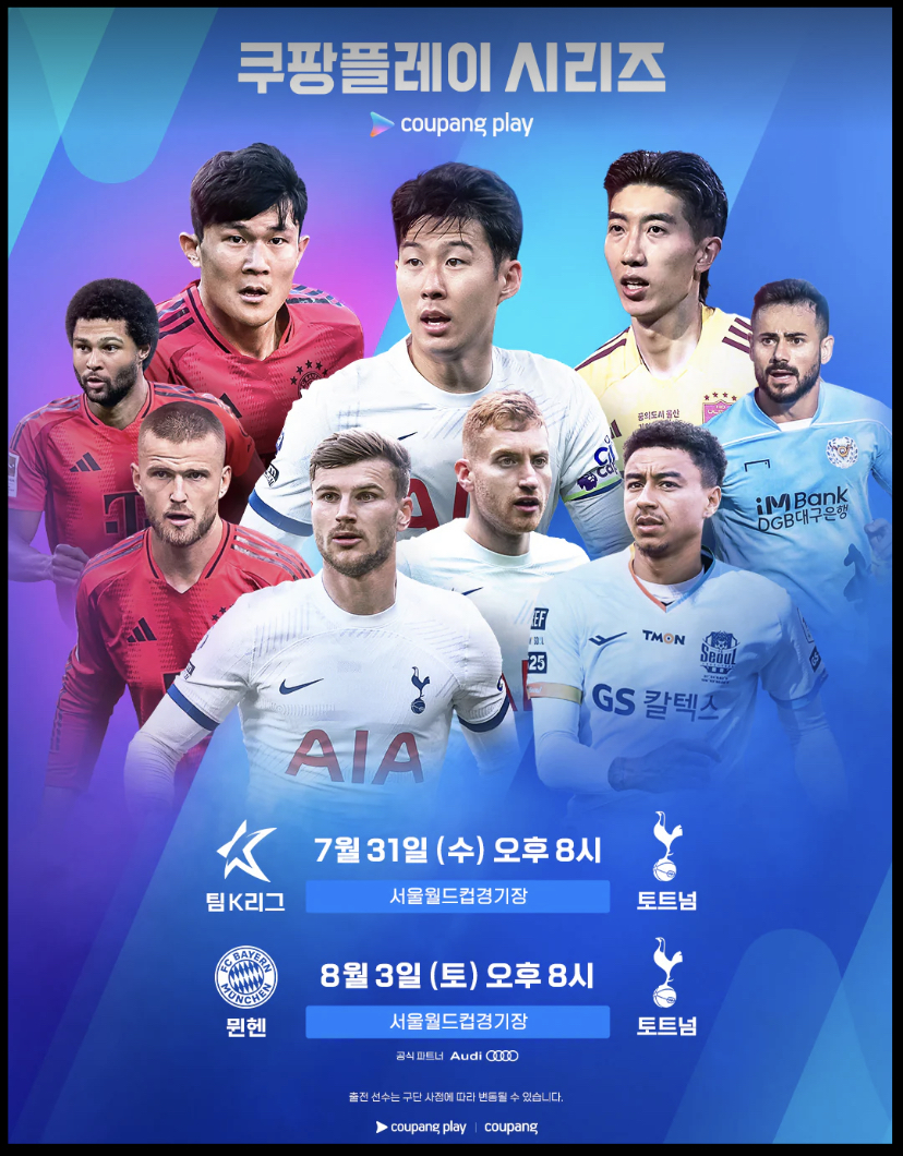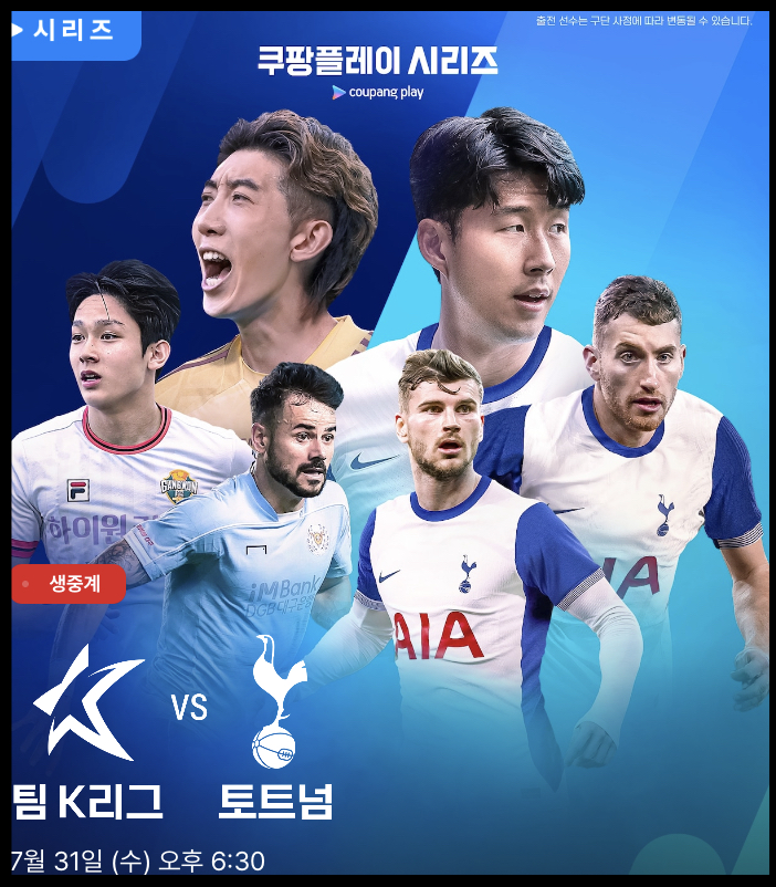 2024 쿠팡플레이 시리즈 프리시즌 경기에서 EPL 토트넘과 팀 K리그가 맞붙습니다. 메인 토트넘 경기일정 중 첫번째에 속하는 팀K리그와의 맞대결은 7월 31일 오후 8시 서울월드컵경기장에서 열리는데요. 이번 경기는 손흥민과 양민혁의 맞대결이라는 점에서 많은 축구 팬들의 기대를 한껏 모으고 있다. 과연 누가 이 빅매치에서 승리할지, 쿠팡플레이를 통해 실시간으로 확인할 수 있습니다. 중계는 쿠팡플레이를 통해 라이브 생중계됩니다. 그럼 토트넘 K리그 경기 중계 바로가기에 대해 자세히 알아보겠습니다.