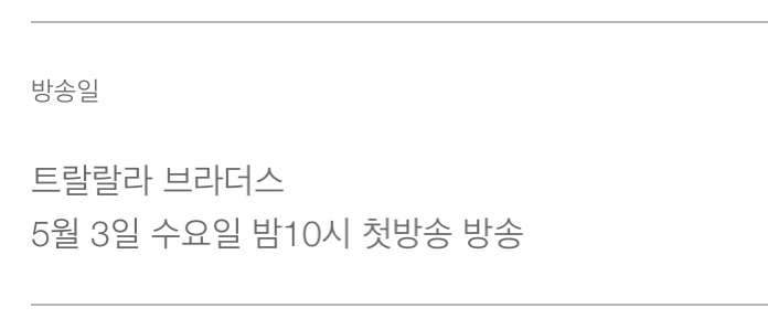 트랄랄라 브라더스는 인간적인 개개인의 매력을 보여주며 승부욕을 이상하게 발동할 때도 있지만 다양하게 매력을 발동해 인간적인 매력에 빠질 수 있을 것이라고 했습니다. 트랄랄라 브라더스는 5월 3일 오후 10시 첫방송됩니다.