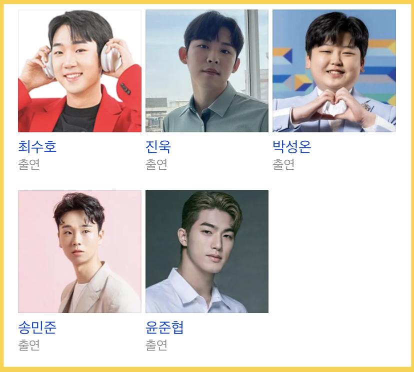 출연진: 안성훈, 박지현, 진해성, 나상도, 최수호, 진욱, 박성온과 송민준, 윤준협 등
