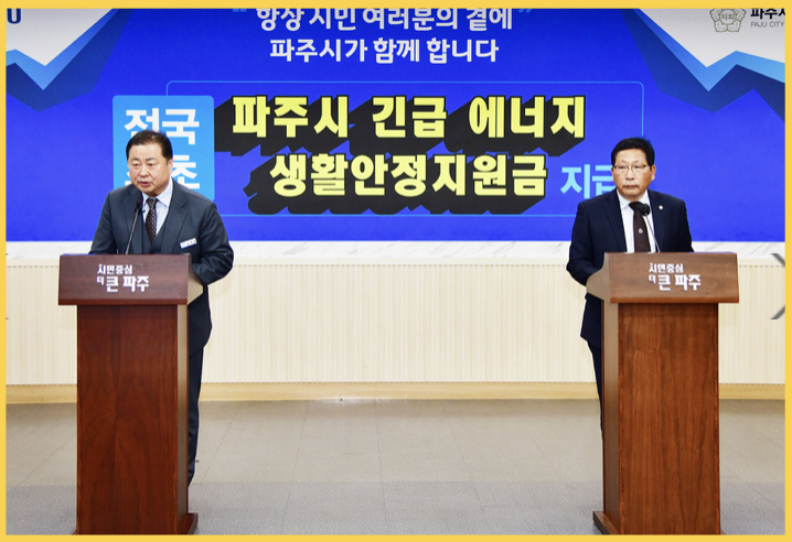 파주시장은 난방비 폭탄을 감당해야 하는 민생의 현실은 재난과도 같은 위기이기에, 전국 최초로 전 가구를 대상으로 에너지 생활 안정지원금 지급을 결정했다고 이야기 했습니다.