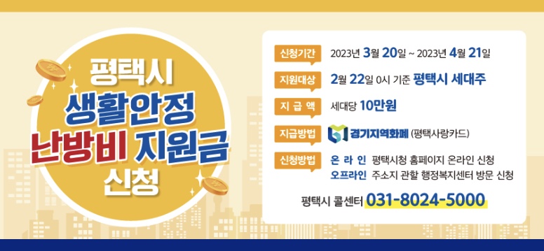 평택시 난방비 지원 10만원 생활안정지원금 신청방법