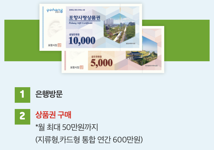 포항사랑상품권 10%할인 구입은 지류형 상품권과 포항사랑카드를 통한 모바일 앱 충전 방식이 있습니다.