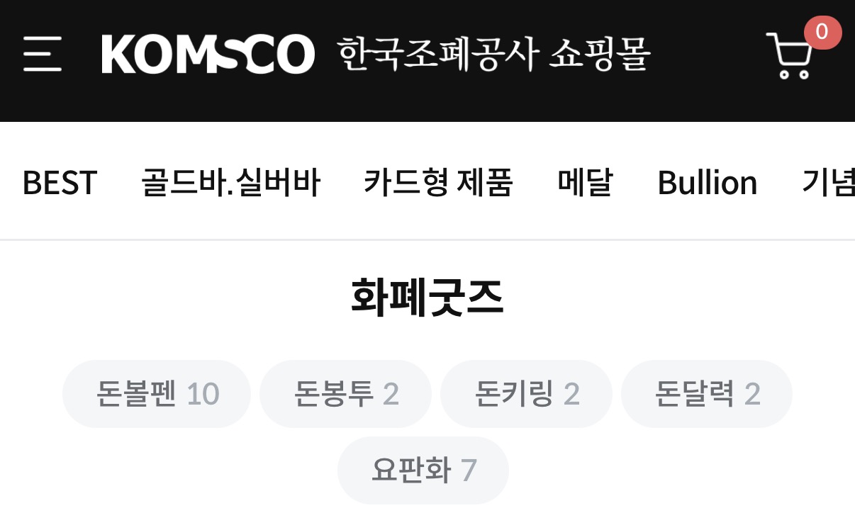 - 화폐굿즈 선택: 쇼핑몰 내 상단 메뉴 혹은 검색창에 “화폐굿즈” 카테고리를 선택합니다.