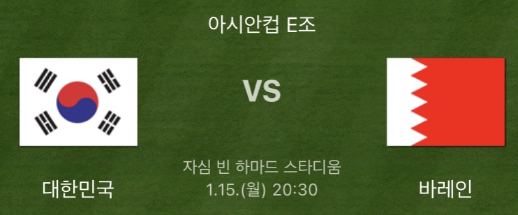 한국과 바레인의 1월 15일 월요일에 카타르 도하의 자심 빈 하마드 스타디움에서 펼쳐지는 아시아축구연맹 AFC 아시안컵 조별리그 E조 1차전 중계 채널은 티비앤 tvN, tvNsports, 티빙 TVING, 쿠팡플레이 coupang play입니다.