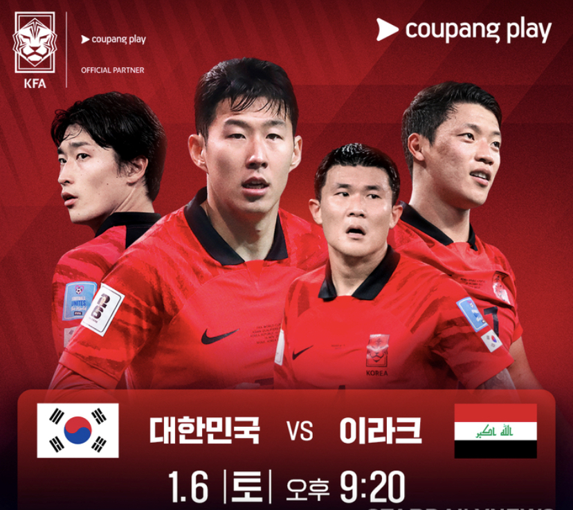 한국 축구대표팀은 1월 6일 오후 10시 아랍에미리트 아부다비의 뉴욕대 스타디움에서 이라크와 맞붙으며 경기는 TV조선과 쿠팡플레이를 통해 중계됩니다.