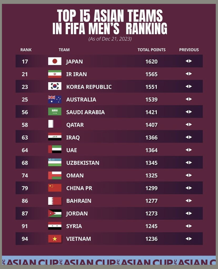 현재 이라크는 FIFA 랭킹 63위로 아시아 나라 중에서는 7위이며 한국은 전체 피파랭킹 23위이고 아시아 나라 중에서는 3위를 하고 있습니다.