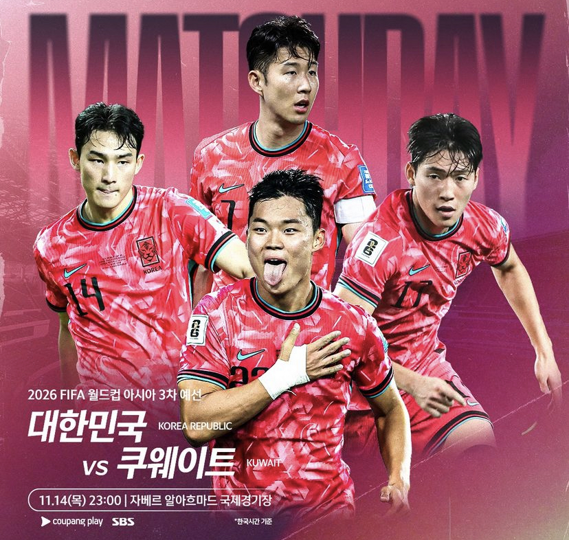 홍명보 감독듸 한국 대표팀은 11월 14일 밤 11시 쿠웨이트 자베르 알아흐마드 국제경기장에서 2026 북중미 월드컵 아시아지역 3차 예선 B조 5차전에서 쿠웨이트와 맞붙습니다. 대한민국 축구대표팀이 월드컵 본선 진출을 위한 원정 경기를 치르게 되는 것입니다. 그럼 한국 쿠웨이트 축구 경기 중계 라인업에 대해 자세히 알아보겠습니다.