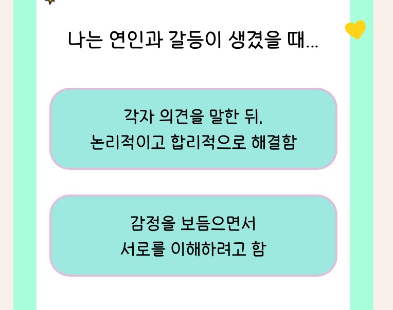 아래는 연애 사고력 테스트 mbti 결과표 입니다.