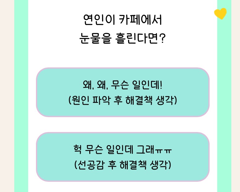 연인이 카페에수 눈물을 흘린다면 원인을 알고 싶지만 조금만 참고 선공감을 한 뒤 해결책을 같이 생각해 봅니다.