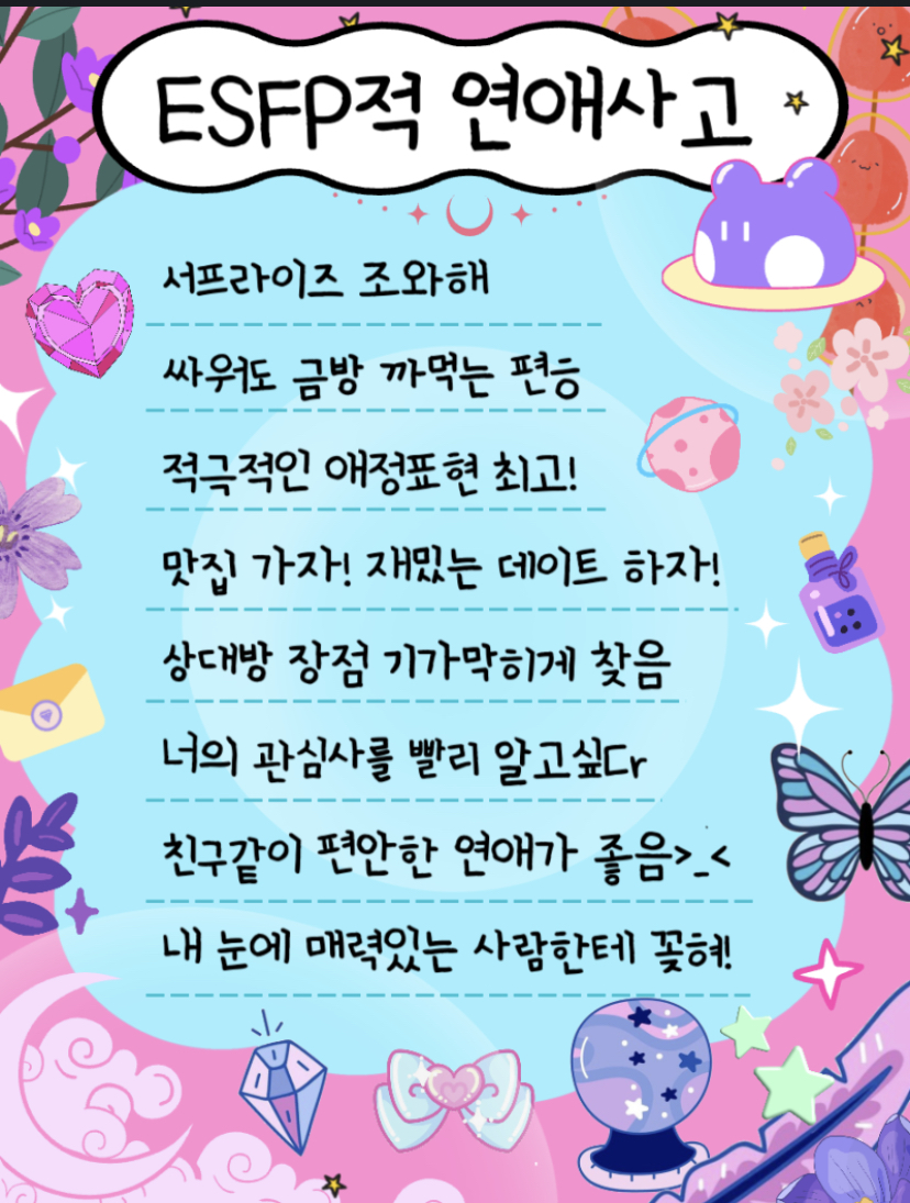 아래는 연애 사고력 테스트 mbti 결과표 입니다.