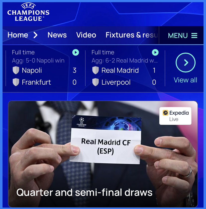 - 레알 마드리드 또는 첼시 - 맨체스터 시티 또는 바이에른 뮌헨