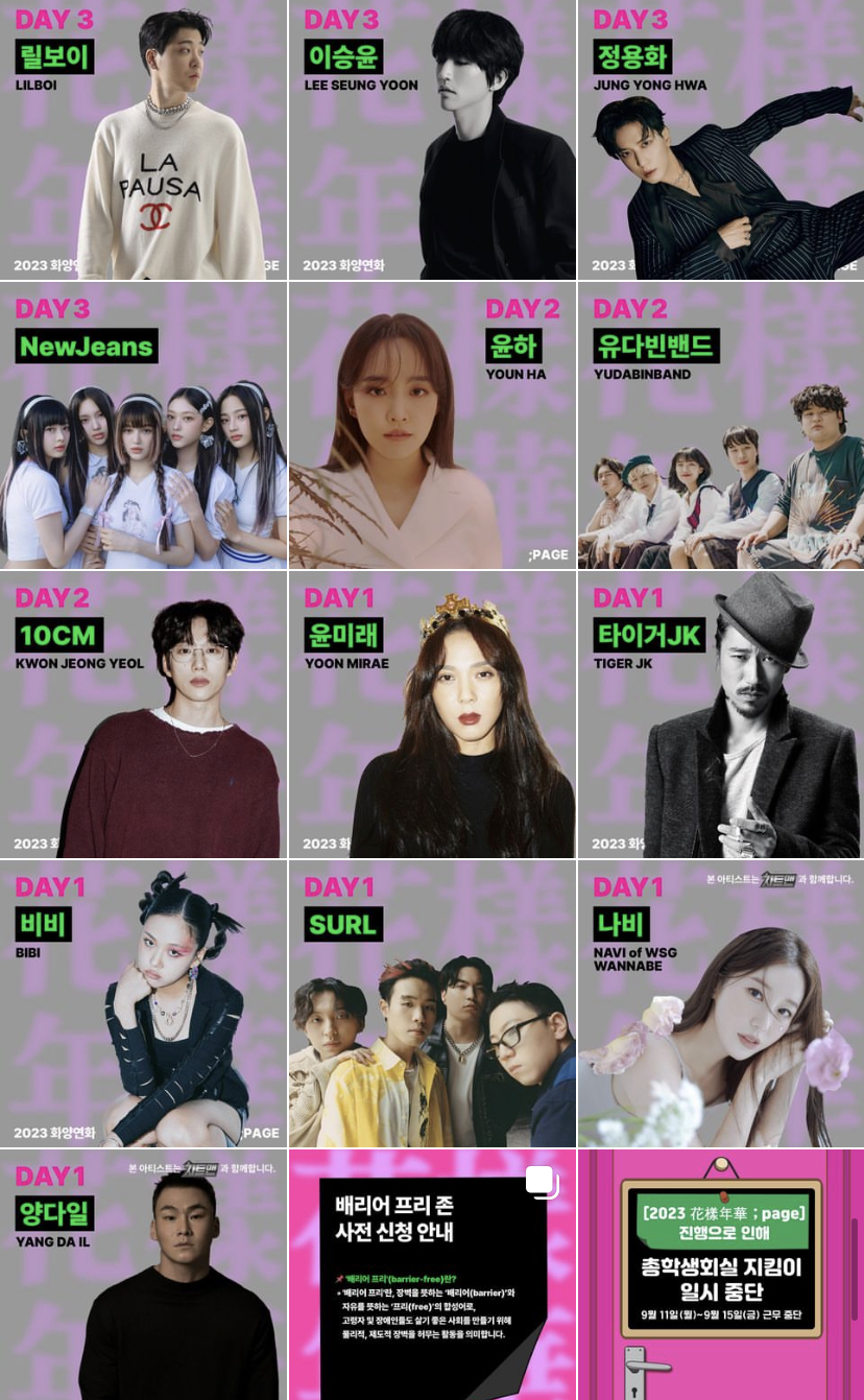 - 9월 14일 : 뉴진스, 윤하, 자우림, 악뮤, 빈지노, 다이나믹듀오