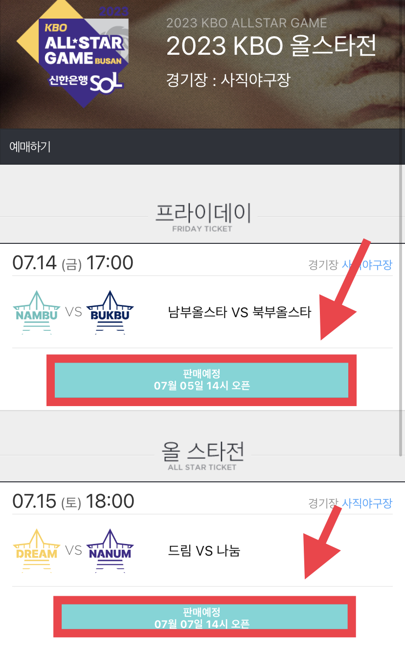 KBO는 7월 5일 수요일부터 2023 신한은행 쏠 KBO 올스타전 입장권 예매를 시작하는데요. 올스타 프라이데이와 올스타전 예매는 7월 5일 오후 2시부터 시작됩니다.