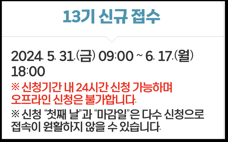 - 신청기간 동안 24시간 수정 가능하나, 마감시간 전까지 최종 제출 버튼클릭 필수입니다.