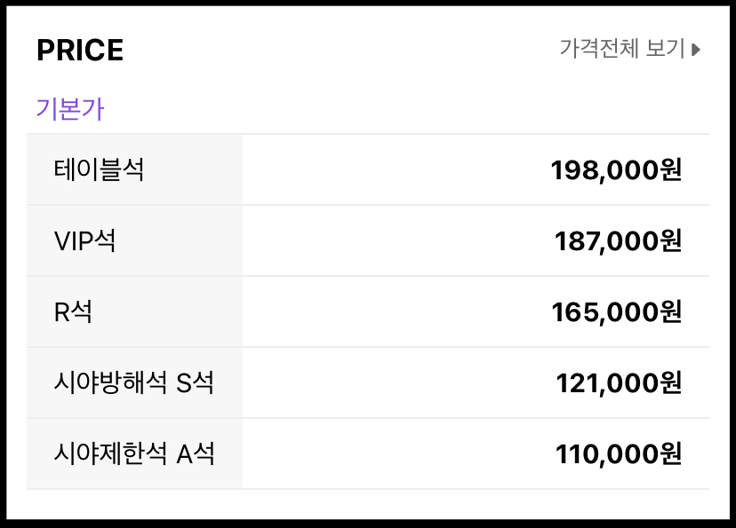 - 각 구역별 가장 앞열은 공연장 안전 난간으로 인해 시야 방해가 있는 좌석이니 이점 참고하시어 양해 가능한 분들만 구매해 주시기 바랍니다.