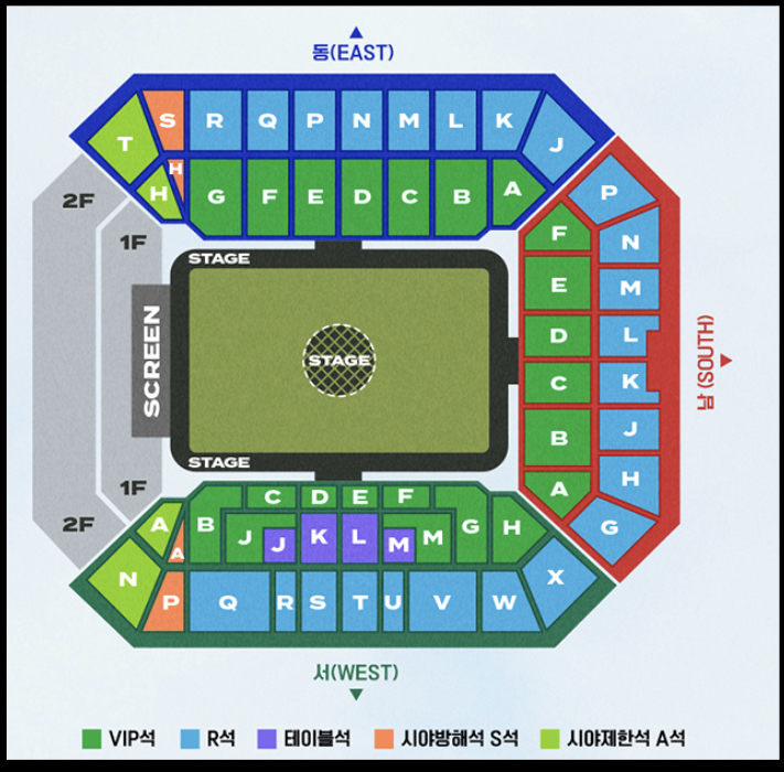 - 시야방해석 S석은 북측에 설치되는 SCREEN 시야가 확보되지 않고 북측 무대에서 진행되는 일부 연출의 시야 방해가 있는 좌석이니 이점 참고하시어 양해 가능한 분들만 구매해 주시기 바랍니다.
