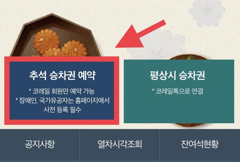 추석 승차권 온라인 예매는 철도회원만 가능합니다. 회원번호와 비밀번호를 사전에 확인하고 비회원은 예매 전 회원가입해야 합니다.